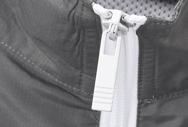2-way silver tone front zip closure