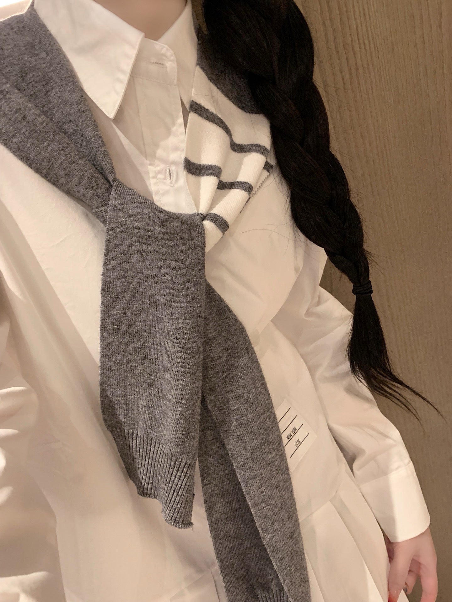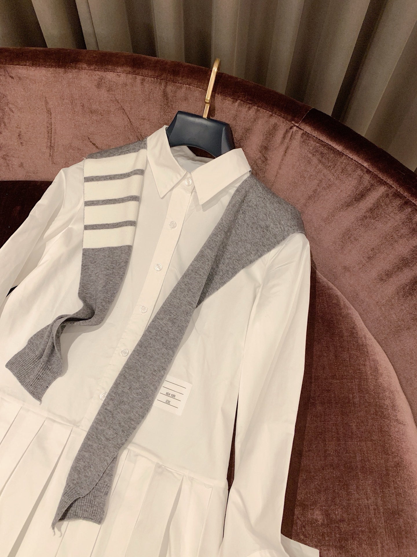 Signature striped grosgrain loop at back of neck